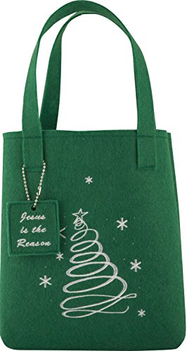 This green felt fiber optic tote bag features an artfully designed Christmas tree embroidered on the front and a felt tag that says, "Jesus in the Reason."