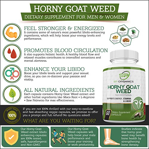-. Title : Ultimate Horny Goat Weed Dietary Supplement For Men & Women By SP Organics | All-Natural & Healthy Libido Enhancing Formula With Maca Root, L-Arginine & Saw Palmetto | Boost Performance & Productivity