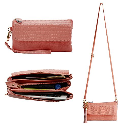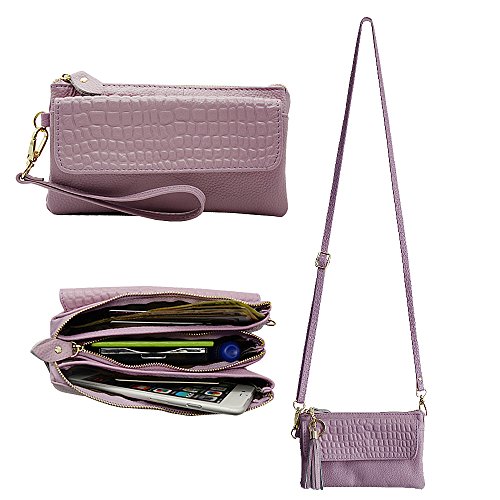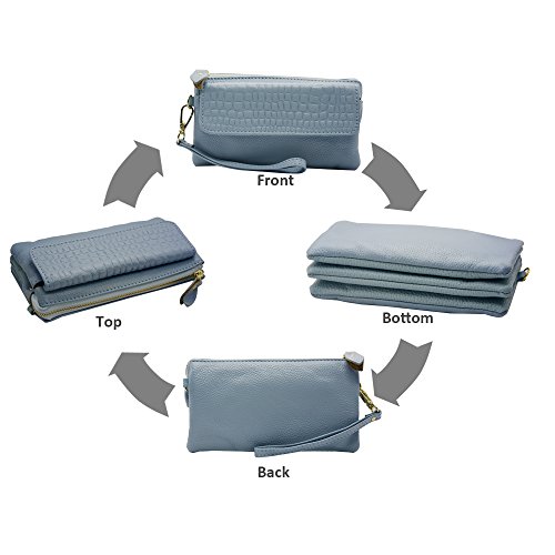 Belfen Leather Wristlet Wallet Clutch Phone Wristlet Women Smartphone Wallet Wristlet with Exquisite Tassels/Card slots/Shoulder strap/Wrist Strap -for smartphone Up to 6.1 x 3*0.3 Inch-Powder Blue