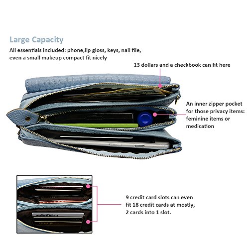 Fortunately Belfen leather wristlet wallet clutch is a stylish solution; it can help you when you want to take your phone out but not want to afford heavy bulk weight while using a tote.