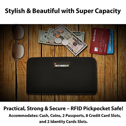 Women Wallet W05 Women Travel Clutch Passport Wallet Black with Rfid Blocking by IGOGEER