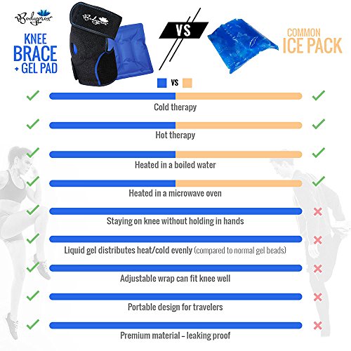 - Bodyprox knee support with a removable gel pack (FREEZER and MICROWAVE safe) is ideal for sports injuries, muscle pains, body aches, and more.