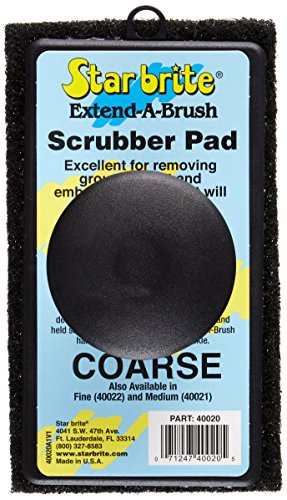 -. Binding : Sports -. Brand : Star Brite -. EAN : 0071247400205 -. Feature : For heavy duty cleaning Ideal for cleaning boat hulls / Removeable ergonomic grip fits comfortably in your palm for reduced hand strain / Can be used as a hand scrubber or attached to any handle using product #40030 Knuckle Attachment. (PN 40030) ASIN B0000AZ5Q9 / Using with handle allows you scrub standing or to reach over and clean the sides of the boat and hard to reach areas / Available in Fine (white), Medium (red) and Coarse (black) -. IsAutographed : 0 -. IsMemorabilia : 0 -. Label : Star brite -. Manufacturer : Star brite -. ManufacturerPartsWarrantyDescription : Parts -. Model : 040020P -. MPN : 040020P -. NumberOfItems : 1 -. PackageQuantity : 1 -. PartNumber : 040020P -. ProductGroup : Sports -. ProductTypeName : SPORTING_GOODS -. Publisher : Star brite -. ReleaseDate : 2010-09-01 -. SKU : 67445 -. Studio : Star brite -. Title : Star brite Coarse Scrubber Pad (Black) with Removeable Ergonomic Handle -. UPC : 071247400205