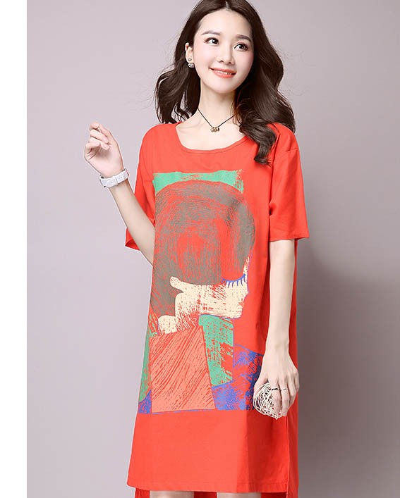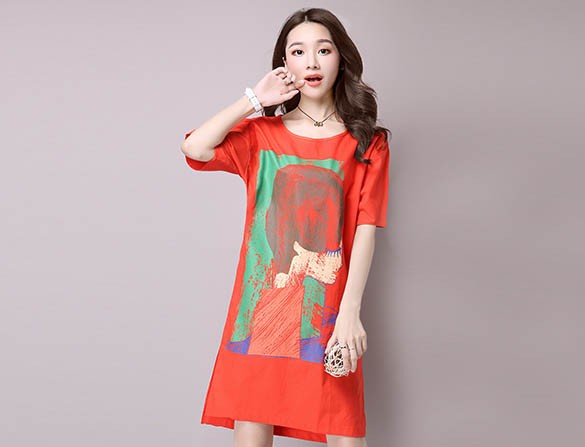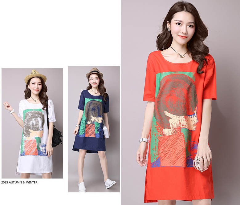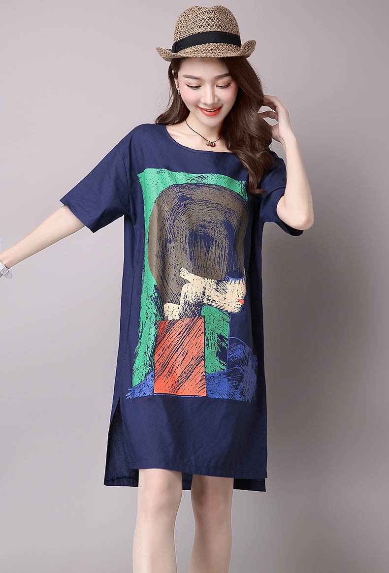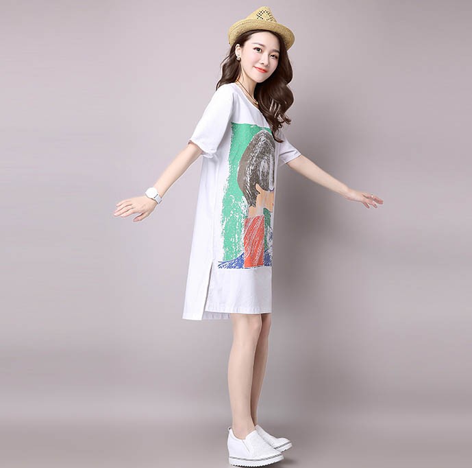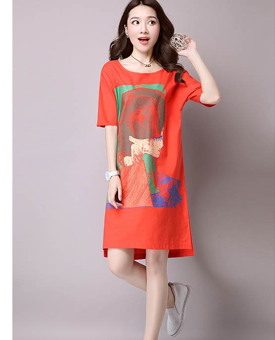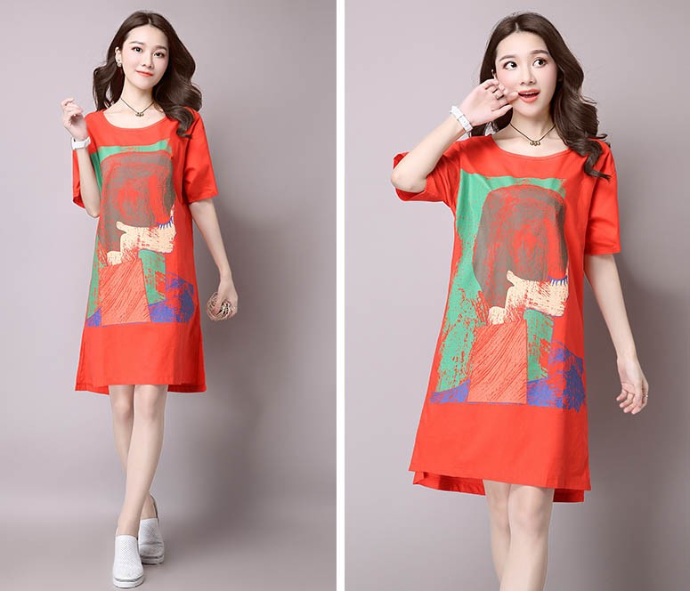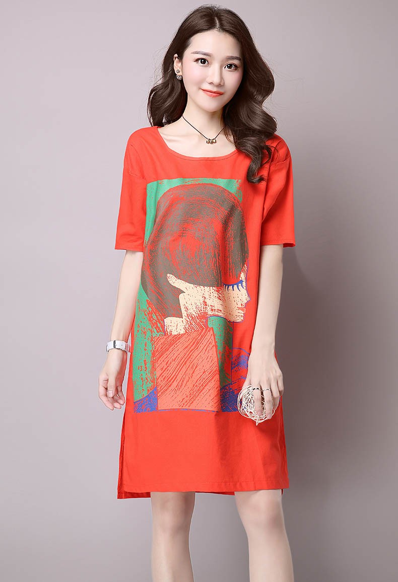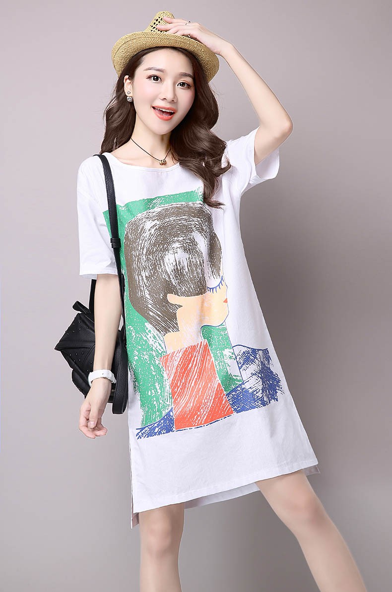【入荷後営業日2,3日以内出荷予定 通関待ちや不良により出荷遅くなる場合はメールにてご連絡いたします。メール受信設定によっては正常に受信されない場合はございますので、 弊社からのメールを予め受信頂くようご設定くださいませ。】 ワンピ ワンピース Tシャツワンピ プリント 人物 半袖 半そで レディス レディース 春 新作 2018麻綿混紡ゆったりTシャツワンピース◆サイズ:M着丈82-86胸囲90L着丈83-87胸囲94XL着丈84-88胸囲982XL着丈85-89胸囲1023XL着丈86-90胸囲106◆素材:コットン85%+リネン15%