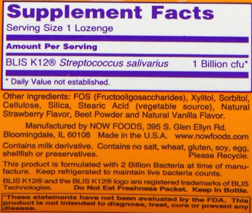 BLIS K12 Streptococcus salivarius 1 Billion cfu Contains milk derivative.