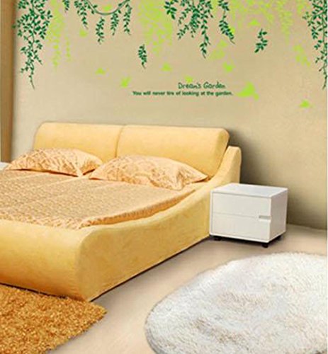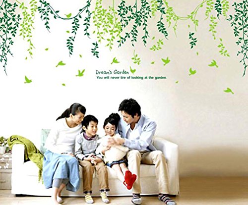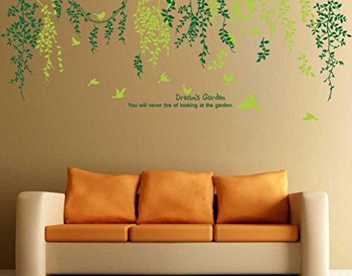 BIBITIME Green Vine Leaves Wall Decal Birds Saying You will never tired of looking at the Garden Dream's Quotes Sticker for Living Room TV Background Couple Bedroom