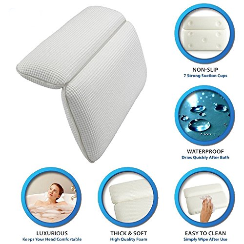 The bathtub spa pillow provides a soft memory foam cushion for your neck and shoulders which is a major plus if there is an issue,solving it will be headache-free. Highly recommend.