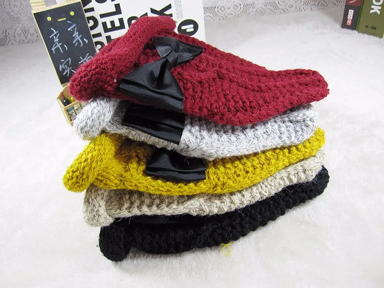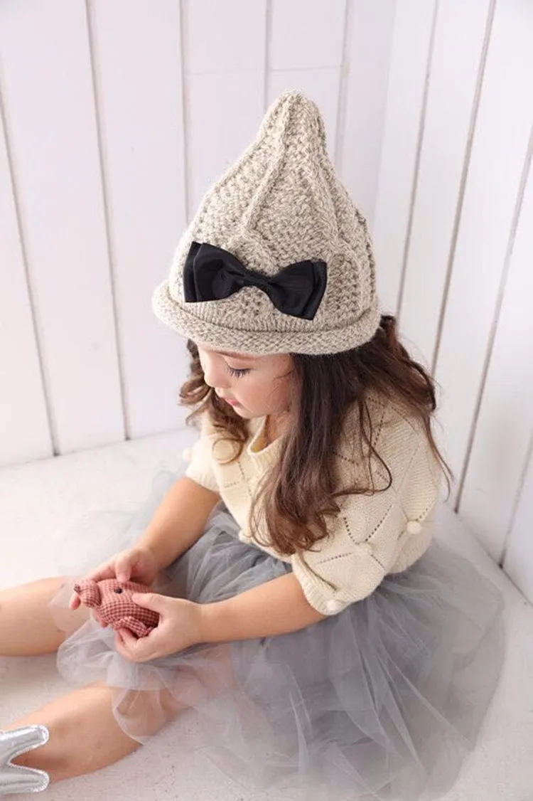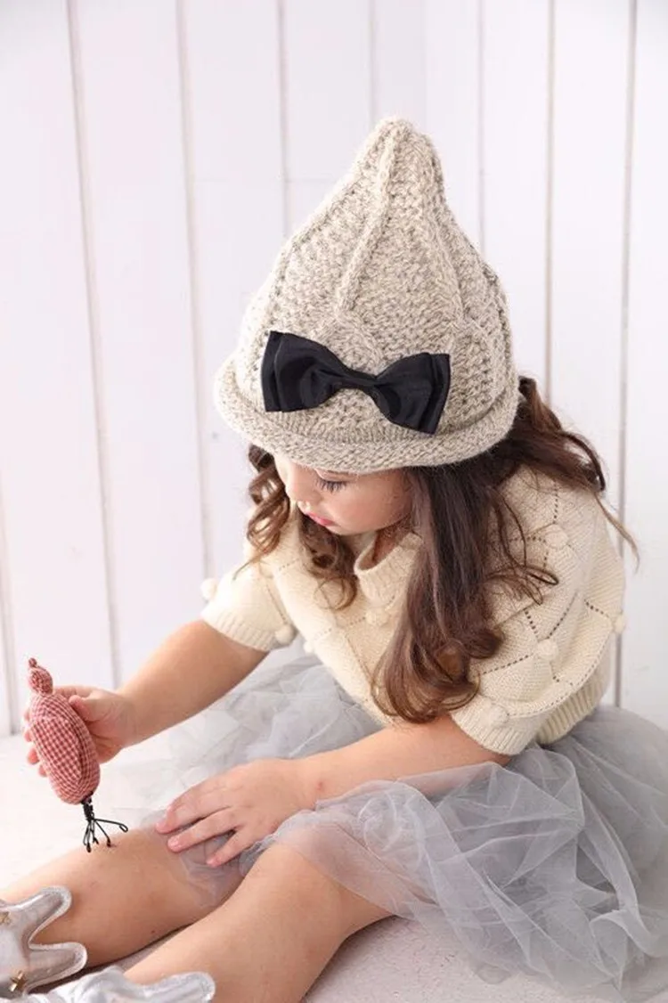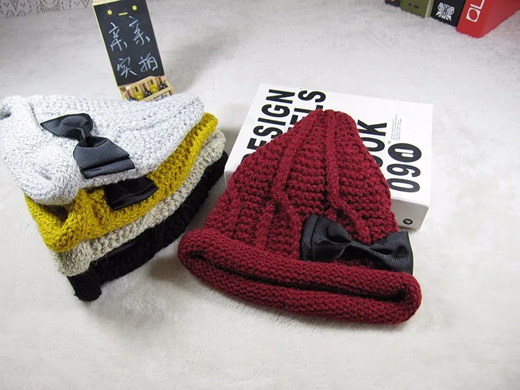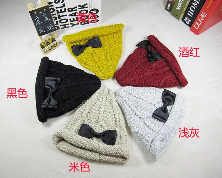 Baby bow twist wool hat hedging Korean children in autumn and winter warm hat knitted hat child pacifier beanies infants hat