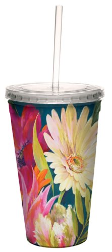 Tree-Free Greetings cc33698 Floral Bouquet by Nel Whatmore Artful Traveler Double-Walled Cool Cup with Reusable Straw, 16-Ounce