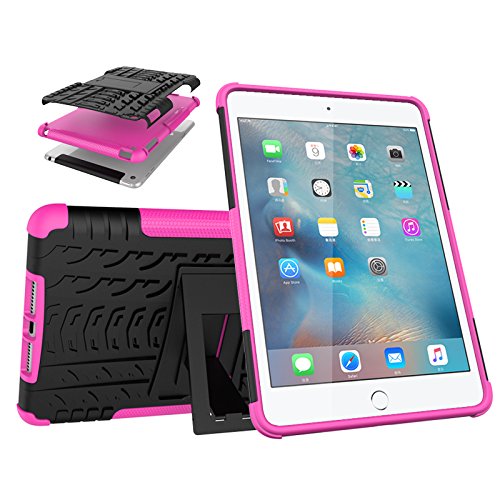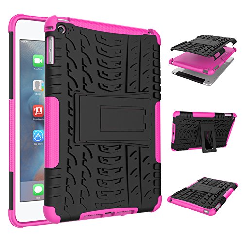 iPad Mini Case, Gold Cherry Shockproof Hybrid Case with Build in I Kickstand Protective Cover for iPad Mini 2 & 3 (iPad Mini 1 2 &3 , Rose Pink)