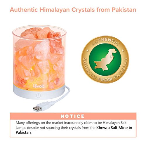 Levoit Upgraded USB Himalayan Salt Lamp, Natural Hymalain Pink Salt Rock(2 Pounds,4.5" Height)Himilian Sea Salt Crystal Light with Touch Dimmer Switch,3 Bulbs Included