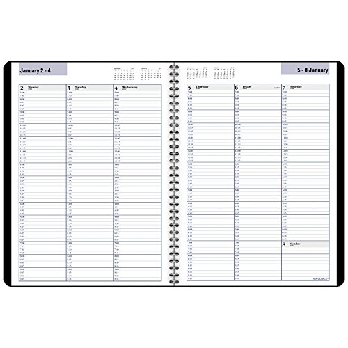 -. Feature : Weekly appointment book / planner has 12 month date range from January - December with Julian dates. Please note color choice is not available to customer, the color will be selected at random for you. / One week per two page spread is column style, with one vertical column for each day to keep you on track; past, current and two future month calendar blocks are shown across the top for date reference / Quarter-hourly appointment times are listed from 7:00 a.m. - 9:45 p.m. Monday - Friday and 7:00 a.m. - 6:45 p.m. on Saturday. Sundays are untimed for leisure.