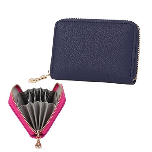Women's Genuine Soft Leather Zipper Card Case Wallet Navy
