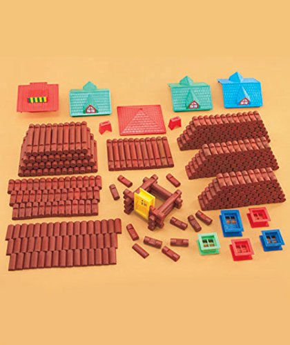 -. Feature : Each set includes: / Logs (from 4-1/2" x 1/2" dia. to 1-1/2" x 1/2" dia.), Roofs (from 1-3/4" x 4-3/4" x 4-3/4" to 5-1/4" sq. x 2"), / Doors (2-1/2" x 1-3/4" x 3/4"), Chimneys (1-1/4" sq. x 3/4"), Windows (1-3/4" sq. x 3/4") / Pine wood and plastic / For ages 3 and up