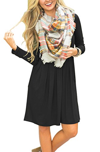 AUSELILY Women's Long Sleeve Casual Loose Swing dress with Pockets.