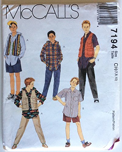 -. Title : McCall's Sewing Pattern 7194 Boys Shirt, Hooded Shirt, Lined Vest, Pull-On Shorts and Pants Nice Variety Size Child 7, 8, 10
