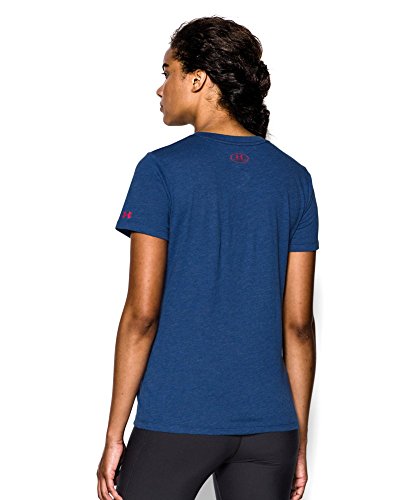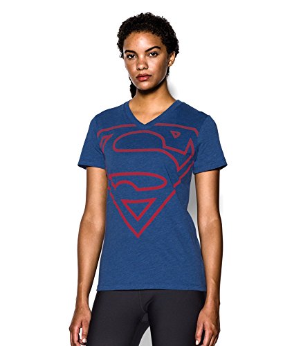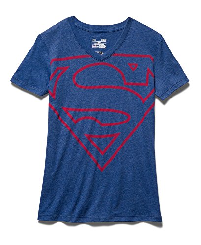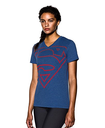 UA Charged Cotton® tri-blend has a soft, athletic feel for superior comfort & performance. Signature Moisture Transport System wicks sweat so it dries faster than ordinary cotton. Anti-odor technology keeps your gear fresher, longer. Lightweight stretch construction improves mobility for full range of motion. Deep V-neck collar & slimmer fit deliver a sleek, more feminine silhouette. Classic Supergirl front graphic. Back UA locker tag. Cotton/Polyester/Rayon. Imported. Supergirl is property of ©DC Comics.Feature