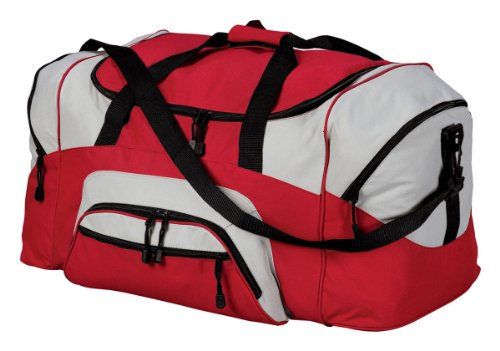 -. Binding : Apparel -. Brand : Port & Company -. Color : Red/Grey -. Department : unisex-adult -. ProductGroup : Apparel -. ProductTypeName : BAG -. Size : 17.5 x 3 x 14 inches -. Title : Port & Company Color Block Sport Duffel Bag, Red/Grey, One Size