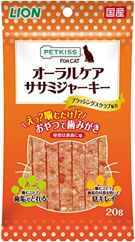 猫ちゃんの大好きなジャーキーが、噛むだけで歯みがきできる「オーラルケア」のおやつになって登場。ブラッシングスクラブが歯と歯のすき間に入り噛むだけで歯垢を除去します。