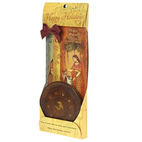 Prabhuji's Gifts - Incense Gift Set - Wood Round Burner + 3 Harmony Incense Packs (Madhumadhavi, Sehuti, Padmanjari) - 30 Sticks