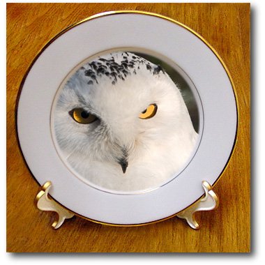 3dRose cp_18122_1 White Owl Porcelain Plate, 8-Inch