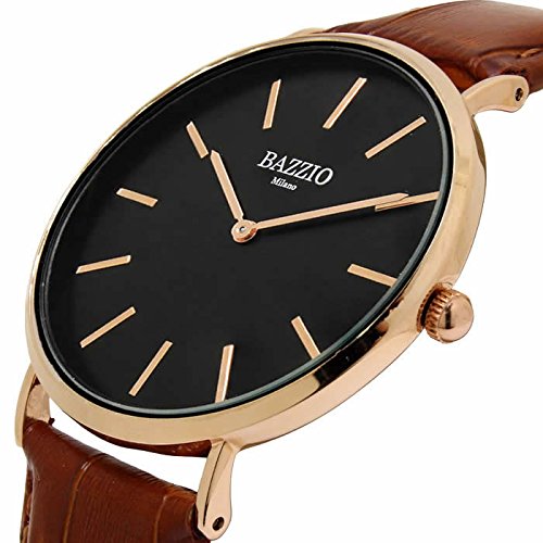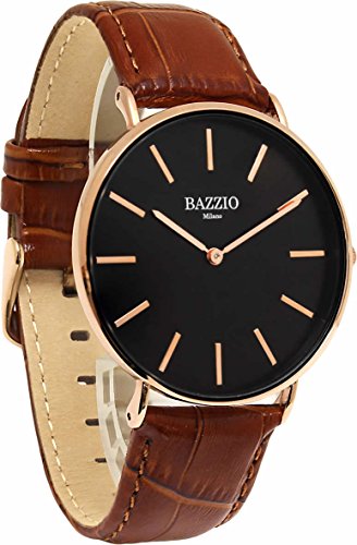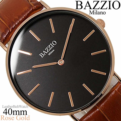 [배지《오》]BAZZIO 손목시계 쿼츠 가죽 벨트 레더 초박형 40mm 유니섹스 맨즈 레이디스 FAL50509G 브라운 블랙 로즈 골드 [병행수입품]