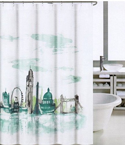 Tahari London Scene Teal Aqua Lime Gray White Shower Curtain AJ PEVA Shower Curtain Liner 70 x 72 inch