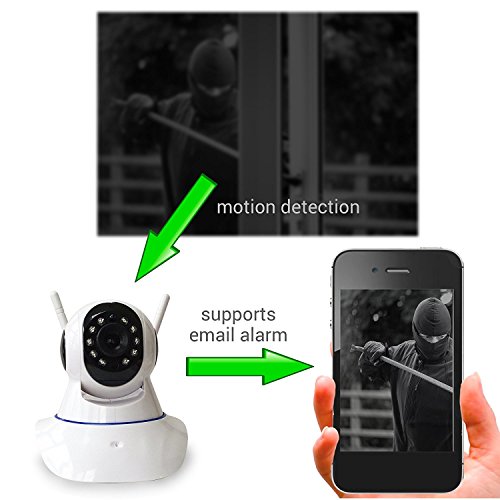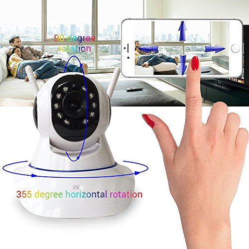 -. Feature : • Video resolution 1280*720P, 11pcs leds and 3.6mm F2.0 lens supports night vision range up to 30ft; See in stunning clarity and sharper details with HD cameras in day/night. / • Pan/Tilt: Horizontal angle 355 degree and vertical degree 90 let you monitor every corner under the camera; Move the security IP camera as you wished, let the dark place at your home is no longer the place you worry about. / • Two Way Audio: This ip camera built in microphone and speakers so you can talk and listen to your family or friend on mobile device. Supporting video recording to micro SD card 32GB (Kindly notice here:This packaging is not included the micro SD card). Email alert, ftp upload, motion detection.Also one camera can simultaneously send push notification message to 3 different phone so no any worries about message delay. / • Alarm Linkage: Built-in 105DB siren, motion sensor and alarm host CPU, working with wireless 433HZ alarm sensors, like door/window contactor, smoke detector, gas leak sensor, etc.(Kindly notice here:This wifi camera supports this features but the packaging is not included this accessories.) / • Quick wired/wireless network connection:QR Code Scan on the packaging, then on the popup page choose your suitable app:Yoosee (for your smartphone) or CMS(for PC client)for easy setup
