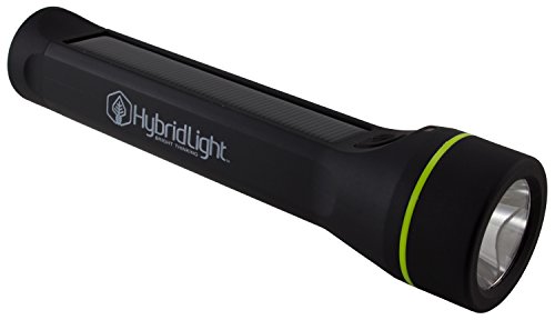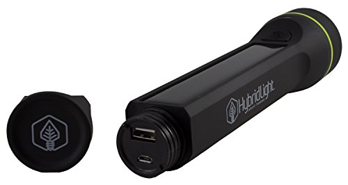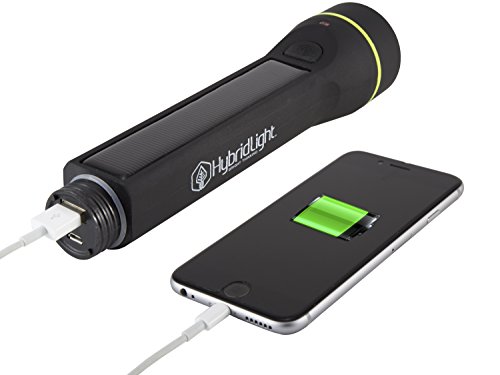 Hybridlight Journey - Solar / Rechargeable 250 Lumen LED Waterproof Flashlight. High / Low Beam, USB Cell Phone Charger, Built In Solar Panel Charges Indoors or Out, Quick Charge using Included USB Cable, Black