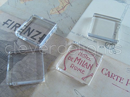 40 CleverDelights Square Glass Tiles - 1 Inch - Clear Tiles - Glass Cabochons - For Photo Pendants Mosaics Trays - 1" 25mm Tiles - 4mm Thick