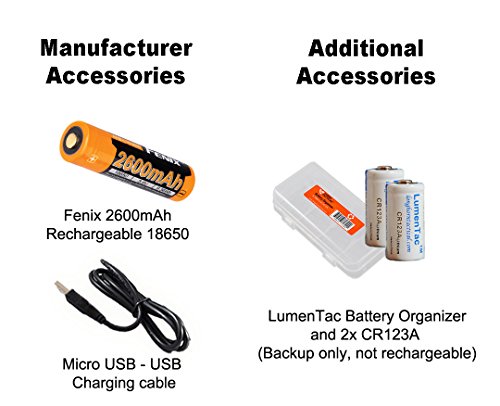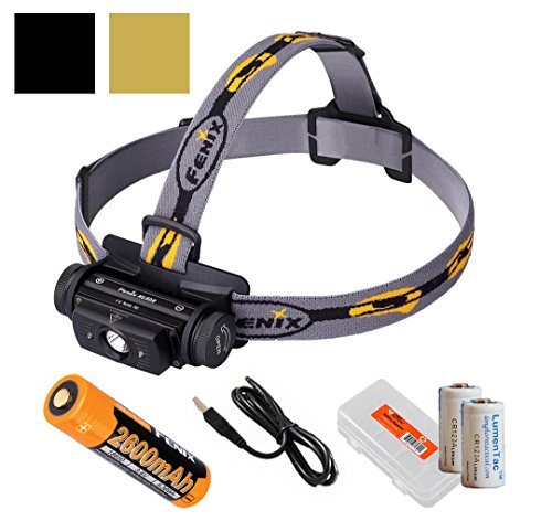 Fenix HL60R 950 Lumens (Black or Desert Yellow Finish) Rechargeable LED Headlamp with 18650 Battery, USB Charging cable, LumenTac Organizer and Backup CR123As