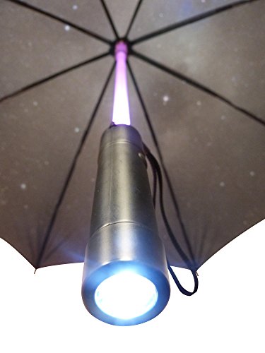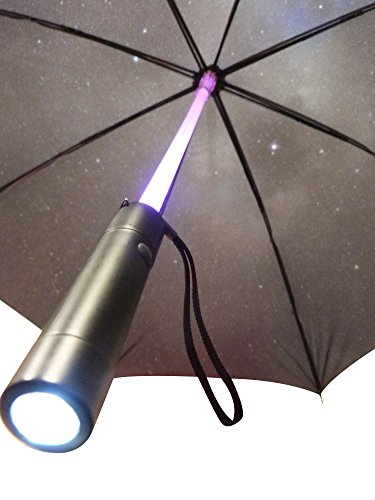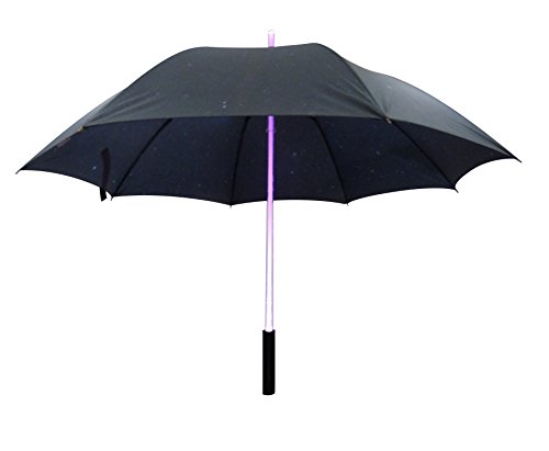 Product Description JUST ADD RAIN Ideal for Sci-Fi Fans of all ages, or anyone that wants a novel umbrella to stand out from the rest of the crowd, our LED Light Umbrella is the way to go. With just one click of the button the LED umbrella shaft will light up in a range of colours from Red, Green, Blue, Yellow, Purple and Rainbow Effect (well unless you forget to put the batteries in!), just keep clicking until you get the colour you desire, it's as simple as that! Complete with LED torch incorporated in the handle, now even in the darkest of nights you'll be a lot more visible to the cars on the street, making your long walk home through the rain a lot safer and striking. 0