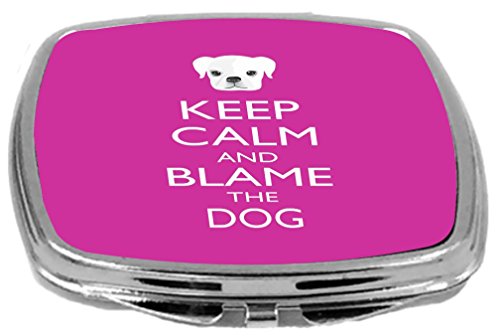 Rikki Knight Compact Mirror, Keep Calm and Blame The Dog, Pink Rose