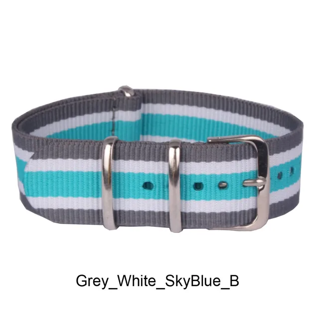 상품 내용 소재:나일론 스트랩, 스테인레스 스틸 버클 밴드 폭:22 미리메터 밴드 길이:275 미리메터 걸쇠 유형:버클 봄 바:포함 색상:Grey_White_SkyBlue 포장 상세
