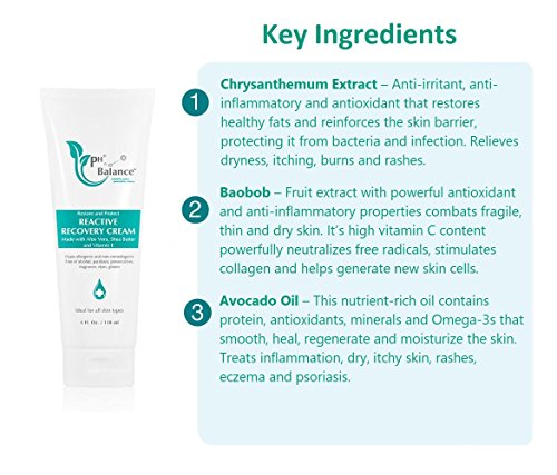 - REACTIVE RECOVERY CREAM - Our most potent and concentrated product for your immediate, extreme dry and irritated skin areas, this cream contains elegantly balanced ingredients that help calm and alleviate skin discomfort, plus helps protect the skin against free radicals.