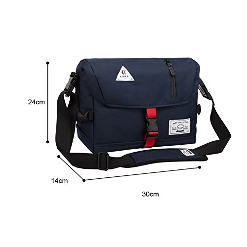 -. Feature : Material: Made of polyester fiber, inside lining oxford cloth / Dimensions: 30cm (L)*14cm(W)*24cm(H) 11.7"L*5.46"W*9.36"H Weight: 1.45 lb / It features one main compartment, a well padded area, ideal for an iPad; there are 2 hand sized pockets with 2 small pockets also have the other 2 medium sized pockets and a smaller zipped pocket for essential items / Fully adjustable shoulder strap with floating pad, tuck away stability strap, convenience for your sport activities / Perfect for men or boy's short-term travel, cycling bag, school bags, a weekend, or casual day pack