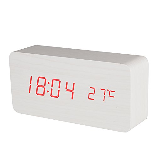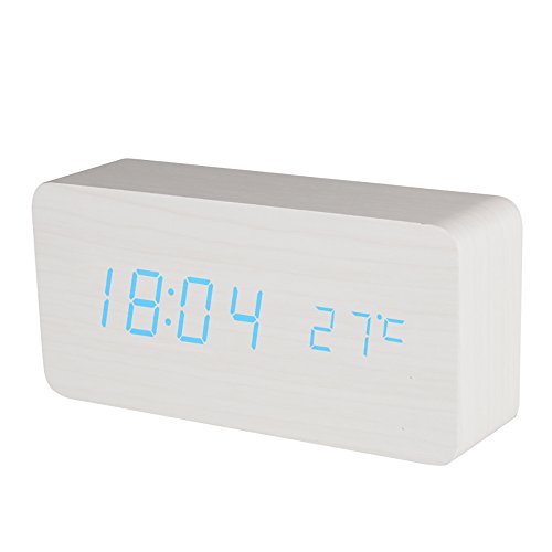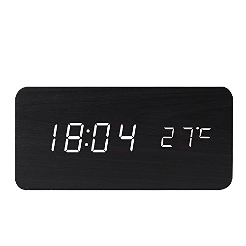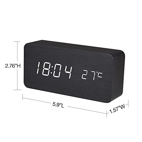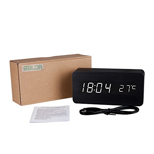 BALDR Wooden Alarm Digital Desk Clock Time and Temperature Display Sound Control