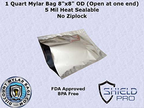 Mylar Bags - 5 Mil 8"x8" 1 Quart - Genuine Odor-Proof Aluminum Foil-Lined Bag for Long Term Food or Herb Storage (100)