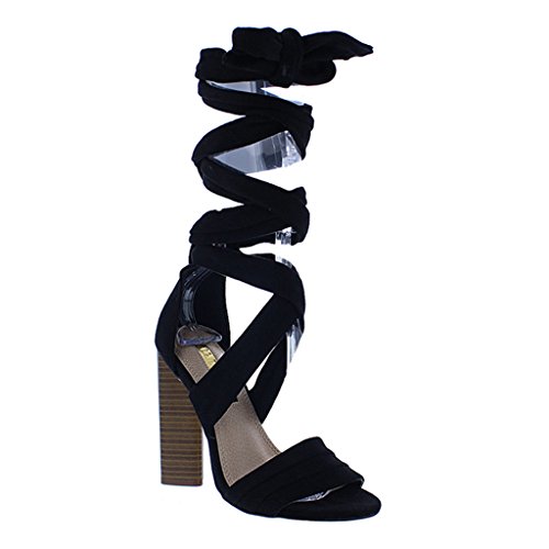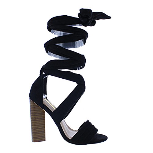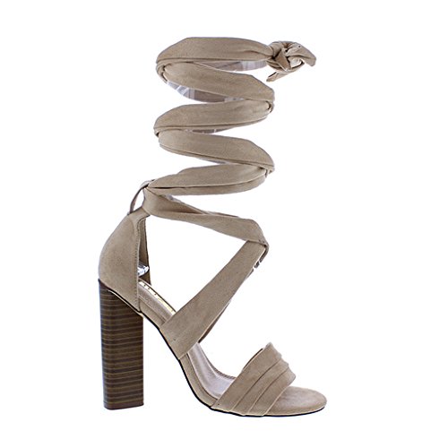Product DescriptionLiliana Women Peep Toe Lounge Suede Leg Wrap Chunky High Platform Heel Era40