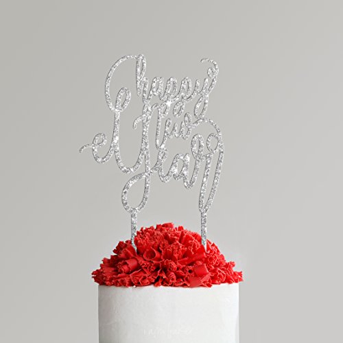 Cake Topper New Year 6.5 X 12 inches Cut Laser Color Glitter Silver