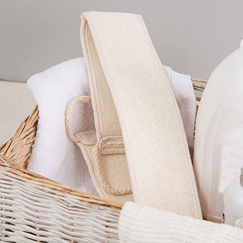 - DEEPLY EXFOLIATE : REJUVENATE YOUR SKIN -- Features natural loofah side for deeply exfoliates; revives the spot in your back be untouched by you.Long straps make it so easy to reach any part of the body.You can massage your skin and clean your pores in your body's areas,like your face,back,neck,shoulders,