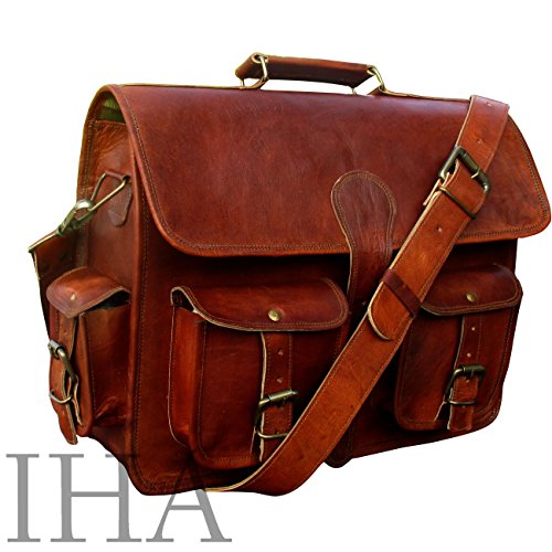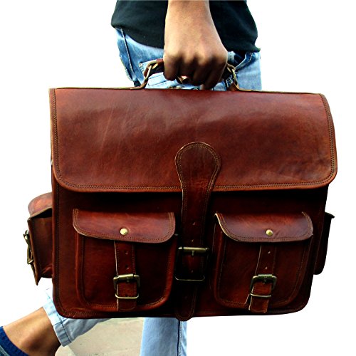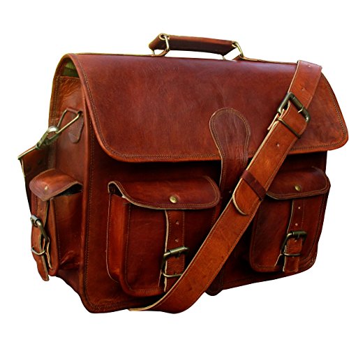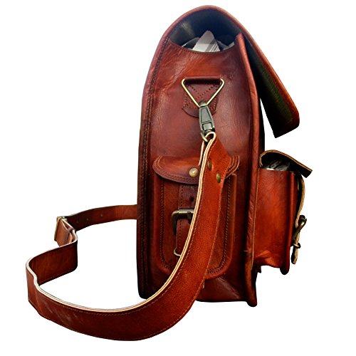 Studio : Indian Hando Art Publisher : Indian Hando Art Binding : Electronics Product Description ? A perfect gift or accessories for all professionals, Students, Artists. ? Multiple pocket for ease of storing your valuable stuff (2 front pockets, 2 side pockets) ? Size: 15" (L) x 11" (H) x 5" (D). ? ANDY Leather messenger bag has three compartments with big middle compartment good for laptops, files etc. Also has two zipper pockets inside the bag. ? This bag comes with a handle on top for convenience and an adjustable strap with shoulder pad for better comfort. ? Stylish, durable canvas lining 0