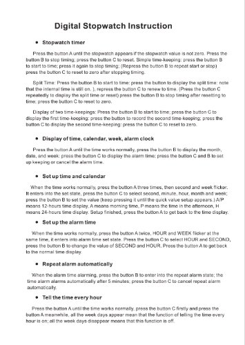 -. Binding : Office Product -. Brand : Owfeel -. Feature : Stopwatch, date and alarm / Designed for teachers / Perfect for timing tests, games and races etc. / Digital display and alarm function, easy 2 button operation. / Great for classroom management and math exercises -. Label : Owfeel(TM) -. Manufacturer : Owfeel(TM) -. MPN : N1F111B401# -. PackageQuantity : 1 -. PartNumber : N1F111B401# -. ProductGroup : Office Product -. ProductTypeName : OFFICE_PRODUCTS -. Publisher : Owfeel(TM) -. Studio : Owfeel(TM) -. Title : Digital Stopwatch with Alarm Date Time Function Black