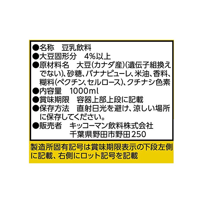 원본상품명: キッコマン料 豆乳料 バナナ 1L×6本