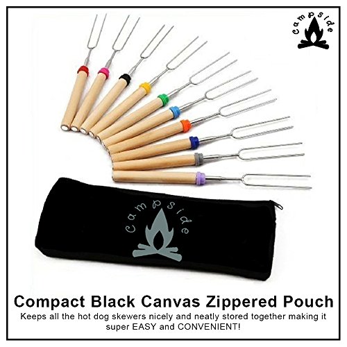CONVENIENT STORAGE: Compact Black Canvas Zippered Pouch keeps all the hot dog skewers nicely and neatly stored together making it super EASY and CONVENIENT. Compact storage makes it Great for camping, at home, or wherever you go!