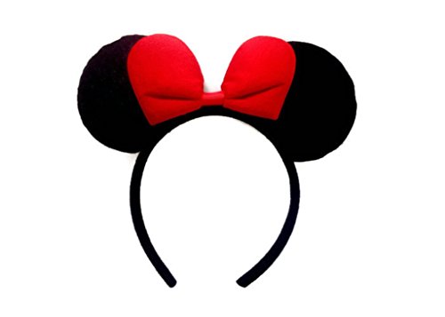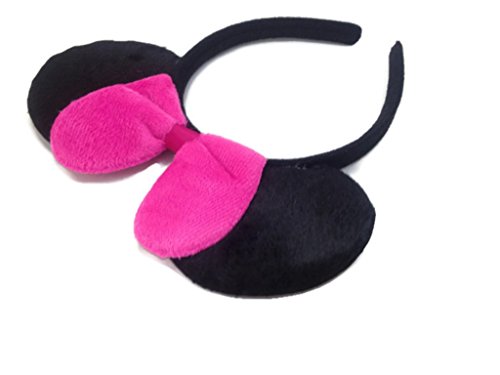 Cloth covered Minnie Mouse ears on a headband.