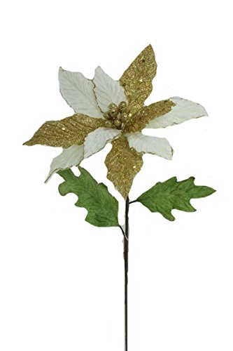 Renaissance 2000 Peacock Poinsettia Stem, 30-Inch, Ivory Gold