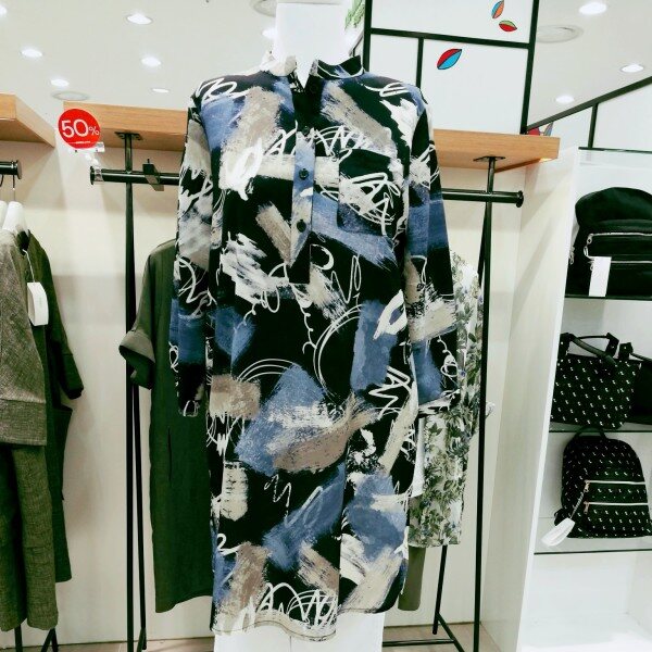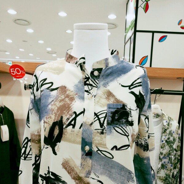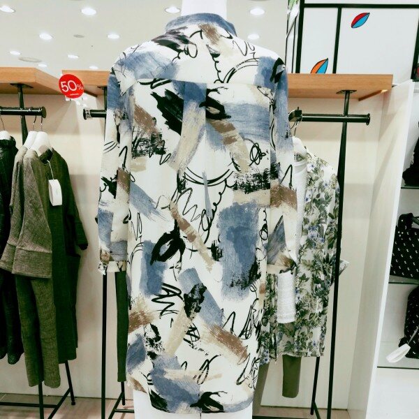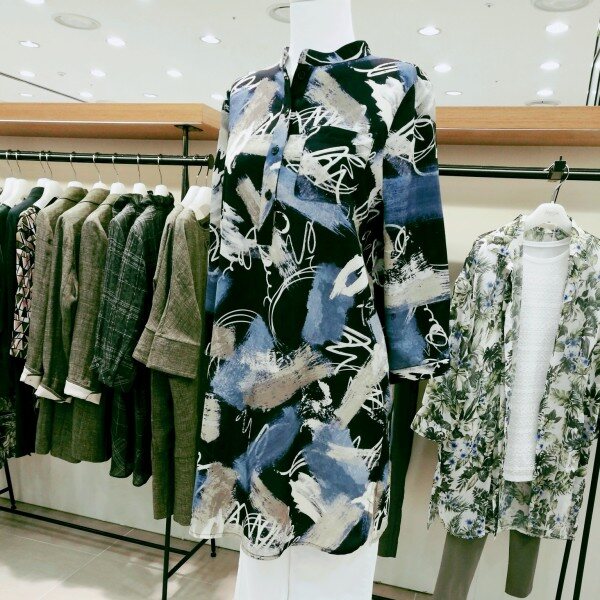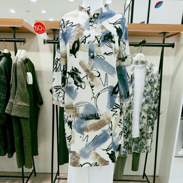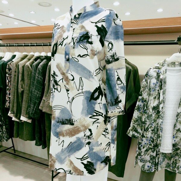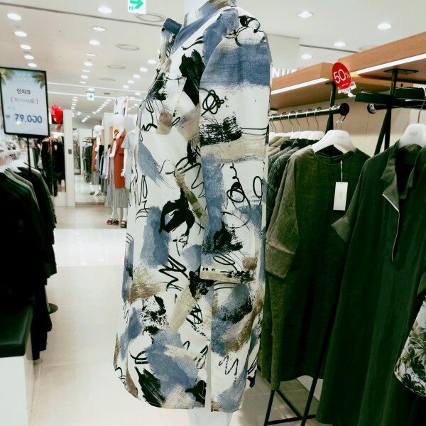 페인팅을한듯한 유니크한프린팅의 반하이넥브라우스입니다가볍게 착용하기에 좋으며깔끔하게 떨어지는 라인의 길이감은 부담없이입으시기좋습니다