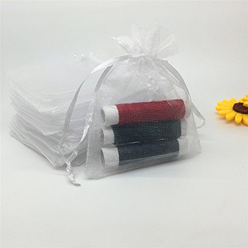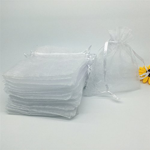 YIJUE 100pcs 3x4 Inches Drawstrings Organza Gift Candy Bags Wedding Favors Bags (White)