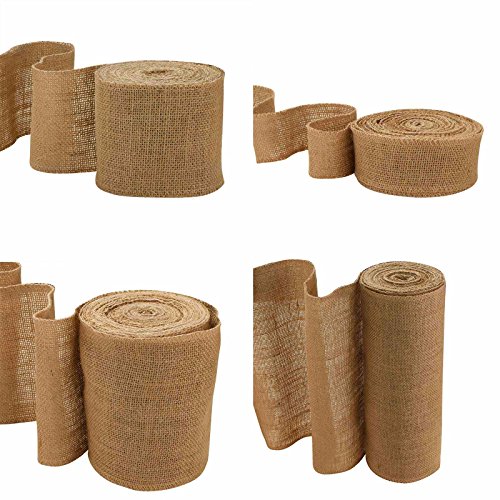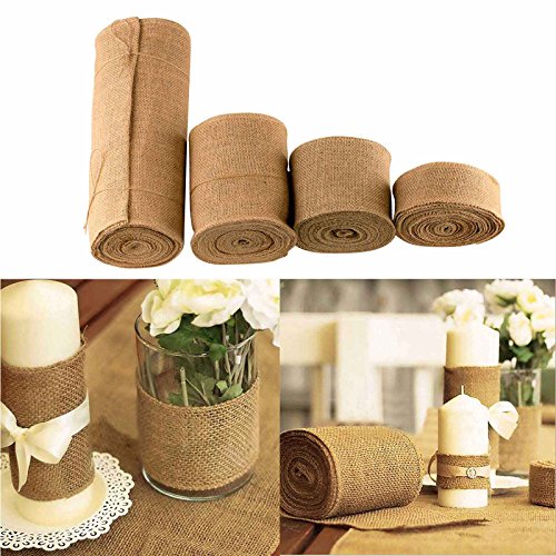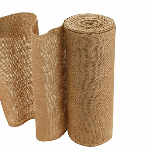 Vlovelife 12'' Wide 10yards Natural Burlap Roll Fabric Rustic Pure Jute Burlap Hessian Table Runner Tape Ribbon Trims Bow Making